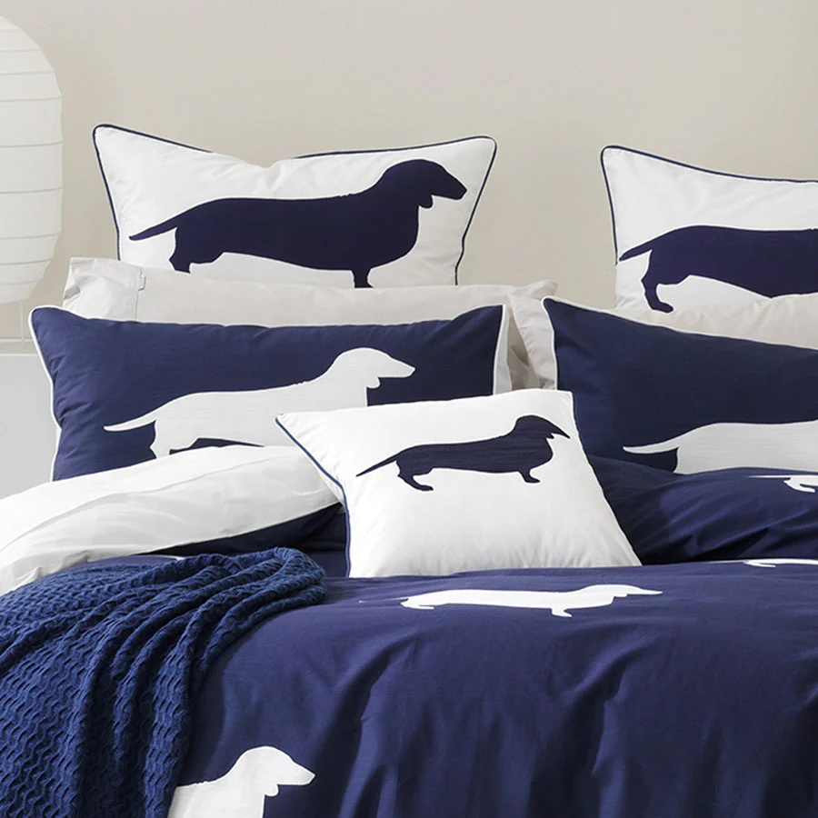 Quirky and fun is the only way to describe the Dachshund Indigo Quilt Cover Set by Bianca.