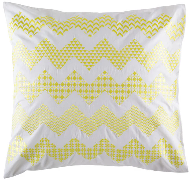 The KAS graphic geometric embroidery accentuates this textured citrus andĀ white design.ĀThe clean lines and the micro patternsĀ that form the over sizedĀ Zig Zag, bring a contemporary twist toĀ classic geometric bed linen.Ā